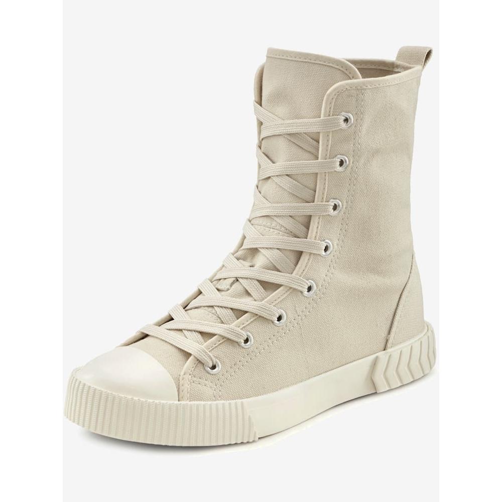 Helline – Bottines chaussures en textile, chaussures en tissu avec laçage tendance beige – Grandes pointures