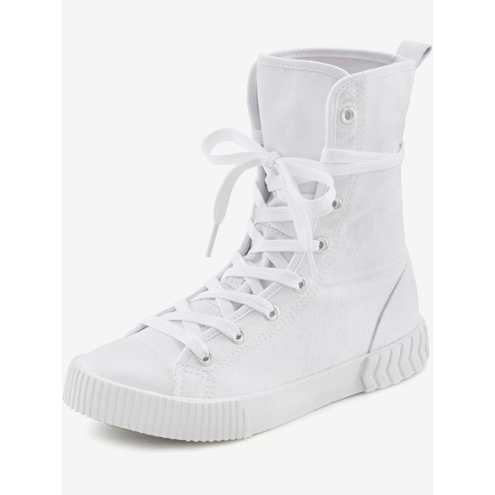 Accueil > Chaussures femme > Bottes / Bottines > Bottines > Helline – Bottines chaussures en textile, chaussures en tissu avec laçage tendance blanc – Grandes pointures