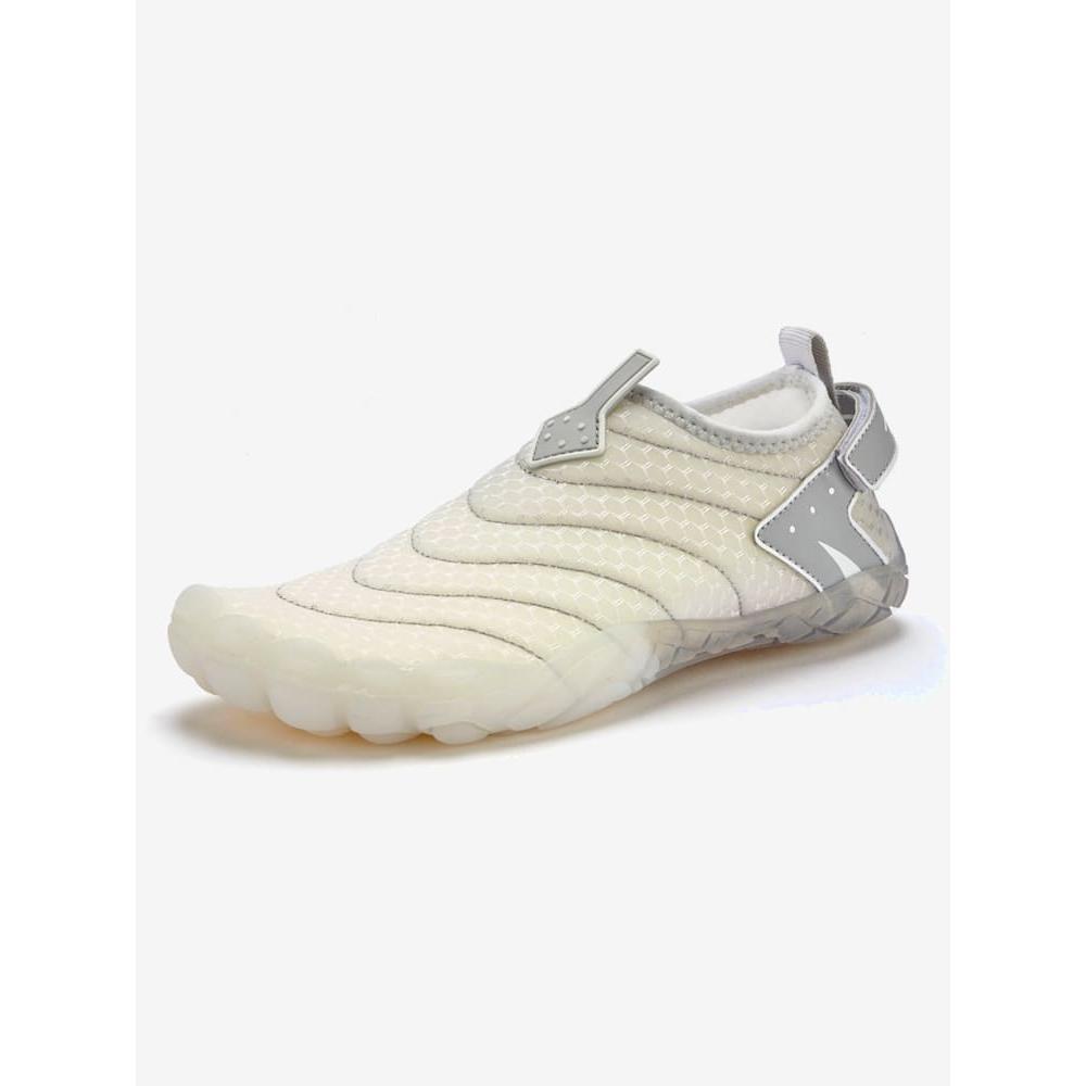 Chaussures de bain respirantes en matière imperméable à séchage rapide avec fermeture auto-agrippante au talon Végan – sans éléments d’origine animale Parfaites en cas d’hallux valgus – ne serrent pas Un compagnon idéal pour les vacances à la plage, pour la piscine ou les sports nautiques comme l’aquabiking et le stand-up paddle – idéal également en tant que chaussures de surf Protège parfaitement contre les irrégularités et les petites pierres sur la plage et dans l’eau.