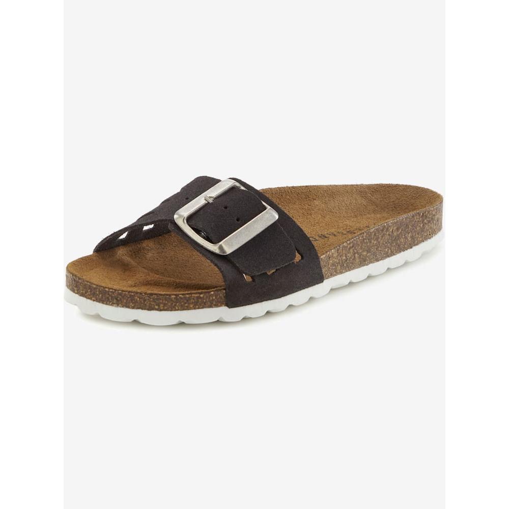 Mules en cuir avec voûte plantaire en liège ELBSAND. Fabriquées en Espagne. Dessus et semelle intérieure en cuir vachette. Semelle de marche en synthétique.