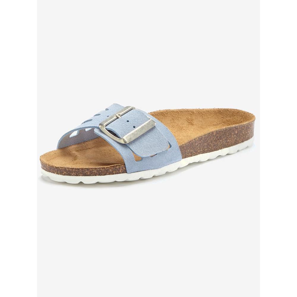 Mules en cuir avec voûte plantaire en liège ELBSAND. Fabriquées en Espagne. Dessus et semelle intérieure en cuir vachette. Semelle de marche en synthétique.
