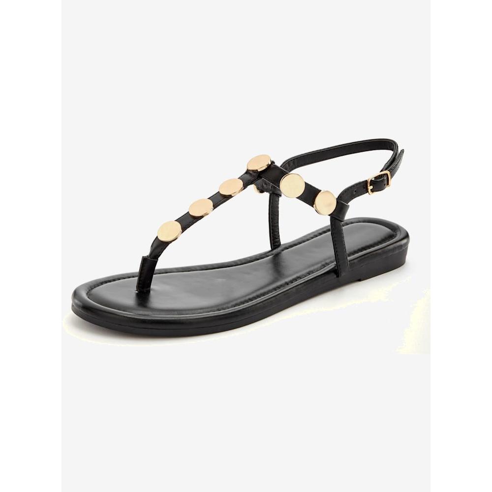 Sandales estivales avec éléments décoratifs couleur or Végan – sans éléments d’origine animale Fermeture à brides réglable individuellement Semelle intérieure rembourrée pour un confort agréable Parfaites pour vos prochaines vacances ou l’été, avec une robe, une jupe ou un short.