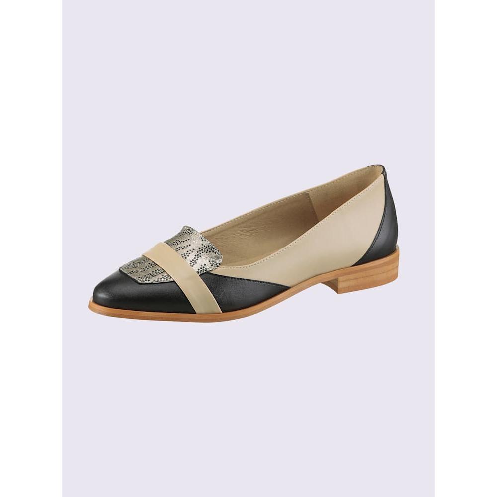 Accueil > Chaussures femme > Chaussures ville > Mocassins > Helline – Trotteurs de fabrication espagnole sable-noir – Grandes pointures
