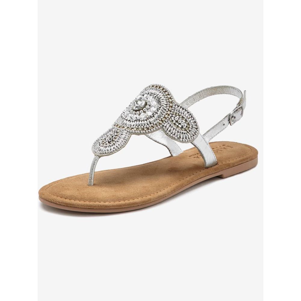 Lascana – Tongs sandales avec petites pierres fantaisie et perles décoratives couleur argent – Grandes pointures