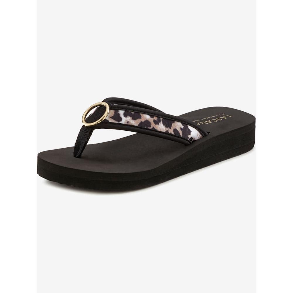 Lascana – Tongs sandales flip-flop légères et souples noir/léopard – Grandes pointures