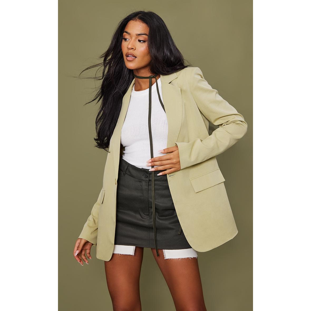 Tall Blazer effet lin vert sauge oversize, Vert sauge. PLT Tall est la collection de PrettyLittleThing pour les filles de plus d’1m75. Fini les robes et les tops trop courts, mettez en valeur votre silhouette avec des vêtements qui vous vont parfaitement !