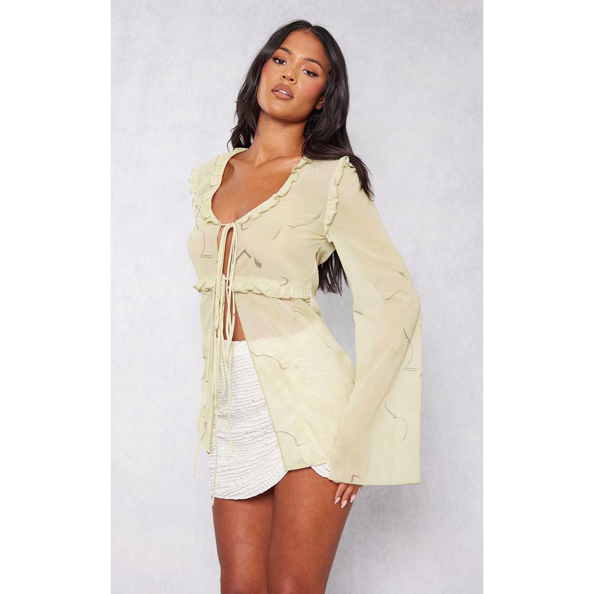Tall Blouse vert citron imprimé abstrait transparente à détail volanté, Vert Citron. PLT Tall est la collection de PrettyLittleThing pour les filles de plus d’1m75. Fini les robes et les tops trop courts, mettez en valeur votre silhouette avec des vêtements qui vous vont parfaitement !