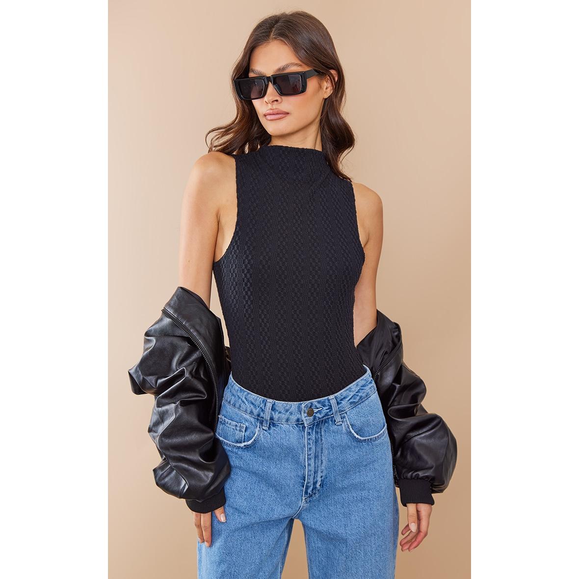 Tall Body texturé noir sans manches à col montant, Noir. PLT Tall est la collection de PrettyLittleThing pour les filles de plus d’1m75. Fini les robes et les tops trop courts, mettez en valeur votre silhouette avec des vêtements qui vous vont parfaitement !