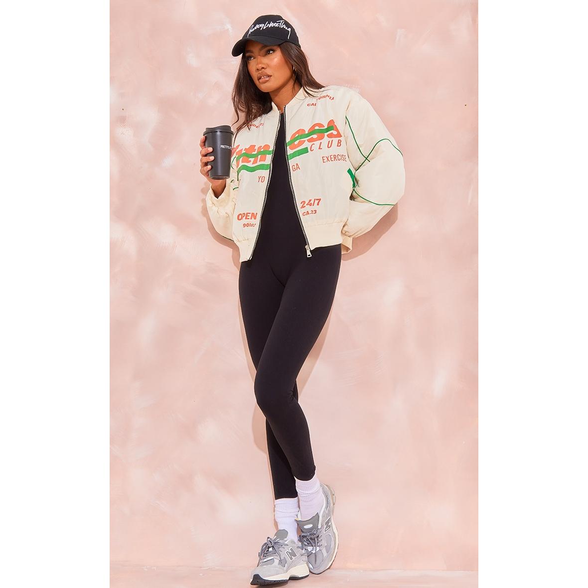 Tall Bomber en nylon crème à imprimé, Crème. PLT Tall est la collection de PrettyLittleThing pour les filles de plus d’1m75. Fini les robes et les tops trop courts, mettez en valeur votre silhouette avec des vêtements qui vous vont parfaitement !