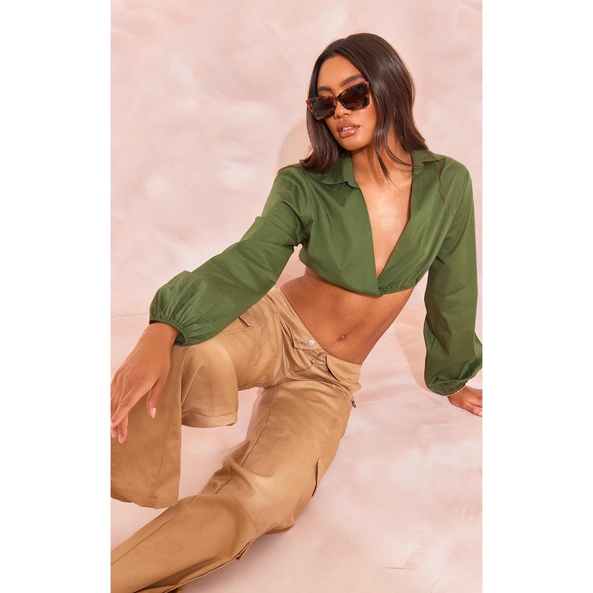 Tall Chemise courte kaki, Kaki. PLT Tall est la collection de PrettyLittleThing pour les filles de plus d’1m75. Fini les robes et les tops trop courts, mettez en valeur votre silhouette avec des vêtements qui vous vont parfaitement !