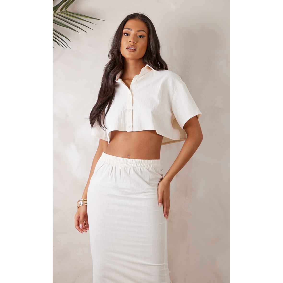 Tall Chemise effet lin blanc cassé à manches courtes, Blanc Cassé. PLT Tall est la collection de PrettyLittleThing pour les filles de plus d’1m75. Fini les robes et les tops trop courts, mettez en valeur votre silhouette avec des vêtements qui vous vont parfaitement !