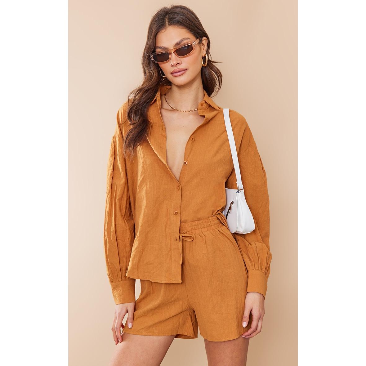 Tall Chemise effet lin rouille, Argile. PLT Tall est la collection de PrettyLittleThing pour les filles de plus d’1m75. Fini les robes et les tops trop courts, mettez en valeur votre silhouette avec des vêtements qui vous vont parfaitement !