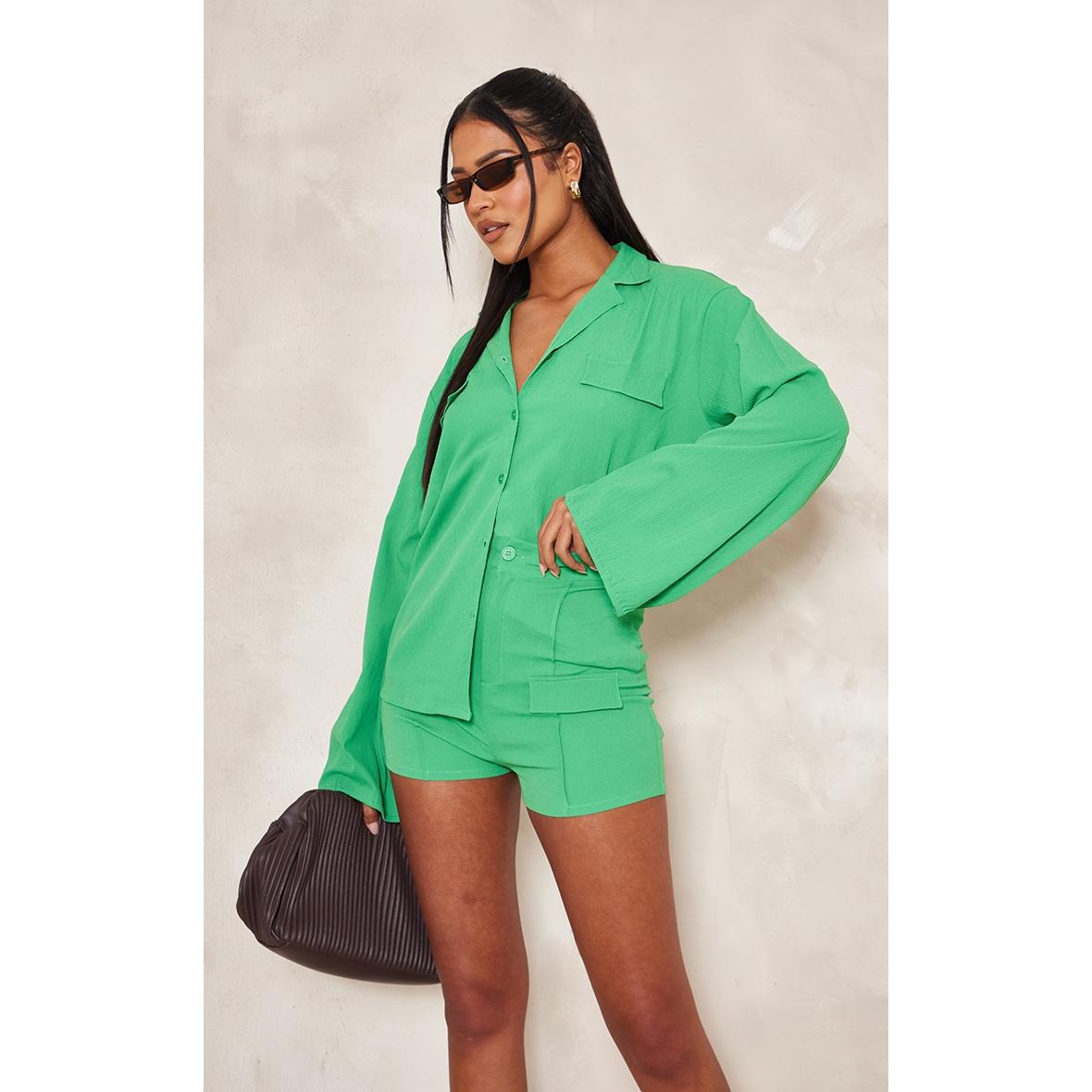 Tall Chemise texturée verte à manches longues, Vert. PLT Tall est la collection de PrettyLittleThing pour les filles de plus d’1m75. Fini les robes et les tops trop courts, mettez en valeur votre silhouette avec des vêtements qui vous vont parfaitement !