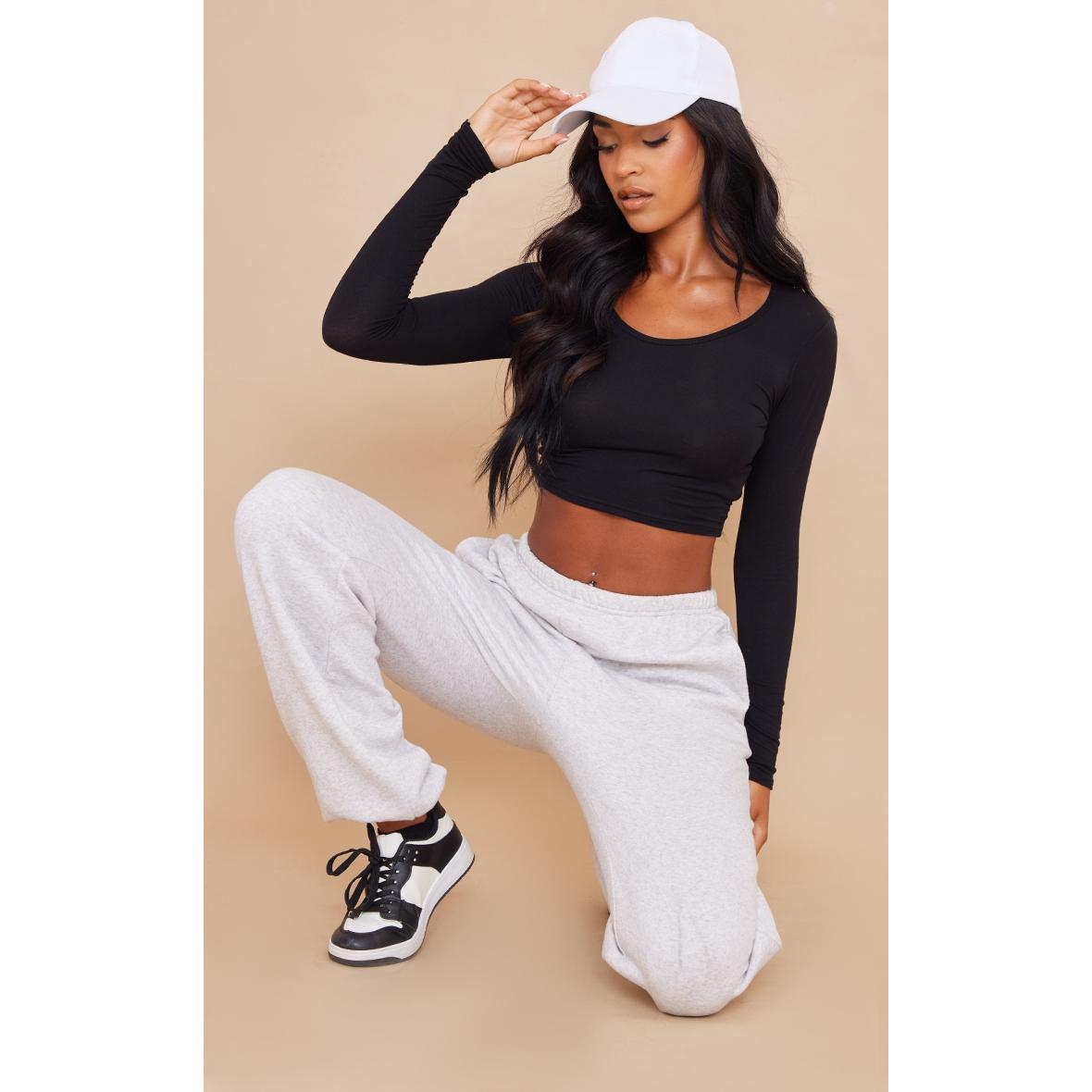 Tall Crop top noir à manches longues et col en V, Noir. PLT Tall est la collection de PrettyLittleThing pour les filles de plus d’1m75. Fini les robes et les tops trop courts, mettez en valeur votre silhouette avec des vêtements qui vous vont parfaitement !