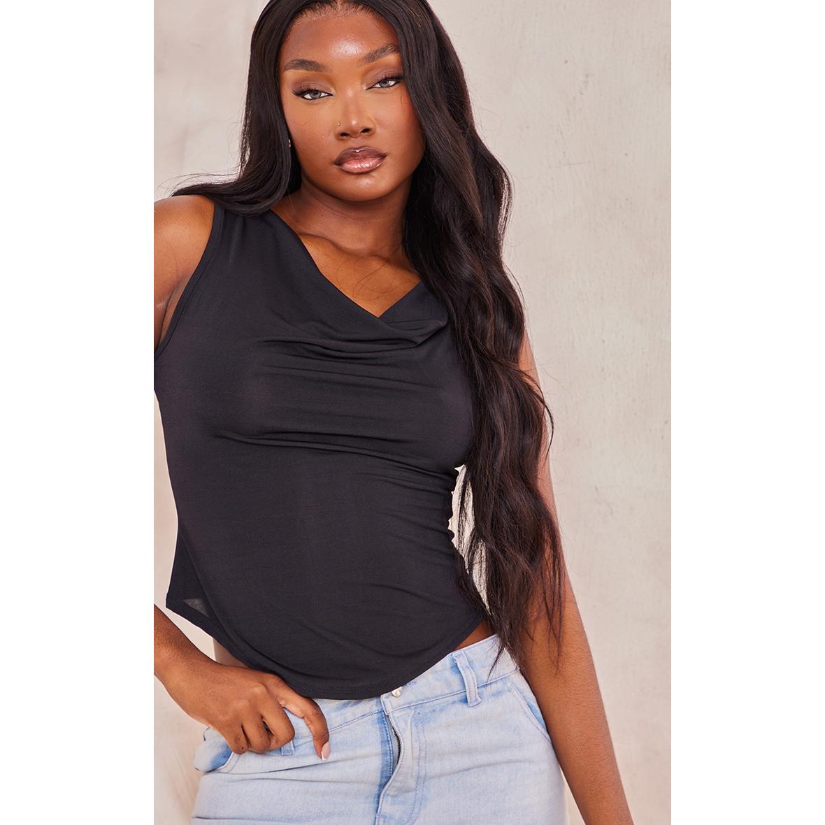Tall Crop top noir froncé, Noir. PLT Tall est la collection de PrettyLittleThing pour les filles de plus d’1m75. Fini les robes et les tops trop courts, mettez en valeur votre silhouette avec des vêtements qui vous vont parfaitement !