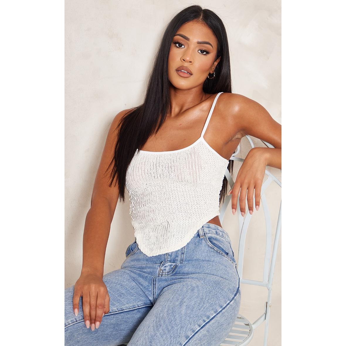 Tall Crop top texturé crème à bretelles, Crème. PLT Tall est la collection de PrettyLittleThing pour les filles de plus d’1m75. Fini les robes et les tops trop courts, mettez en valeur votre silhouette avec des vêtements qui vous vont parfaitement !