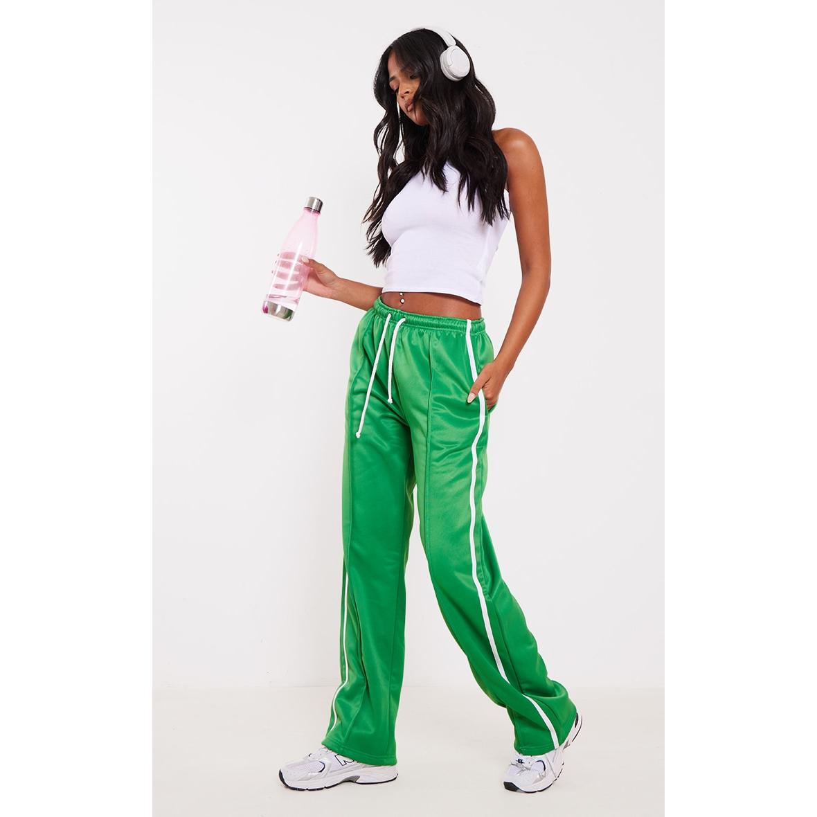 Tall Jogging large vert en maille tricot à bandes sur les côtés, Vert. PLT Tall est la collection de PrettyLittleThing pour les filles de plus d’1m75. Fini les robes et les tops trop courts, mettez en valeur votre silhouette avec des vêtements qui vous vont parfaitement !