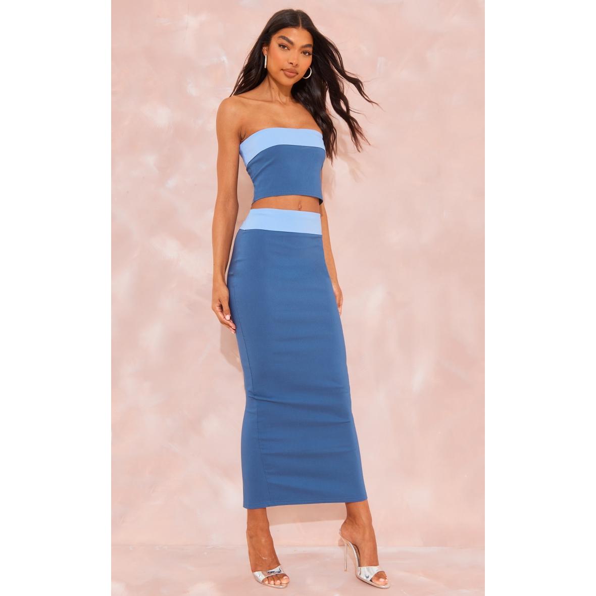 Tall Jupe longue bleue à pli contrastant, Bleu. PLT Tall est la collection de PrettyLittleThing pour les filles de plus d’1m75. Fini les robes et les tops trop courts, mettez en valeur votre silhouette avec des vêtements qui vous vont parfaitement !