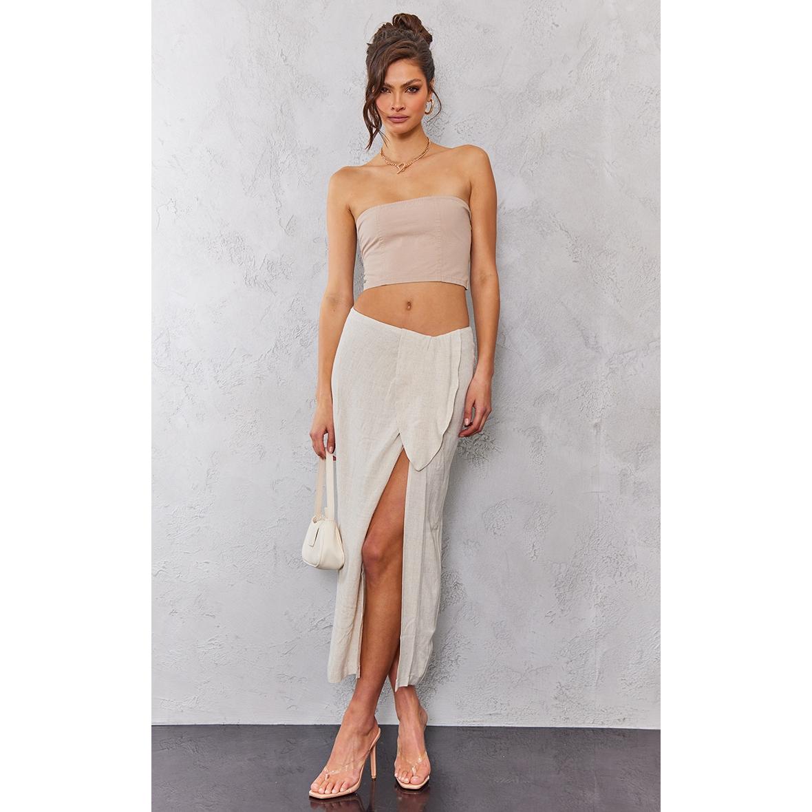 Tall Jupe longue fendue beige effet lin, Beige. PLT Tall est la collection de PrettyLittleThing pour les filles de plus d’1m75. Fini les robes et les tops trop courts, mettez en valeur votre silhouette avec des vêtements qui vous vont parfaitement !
