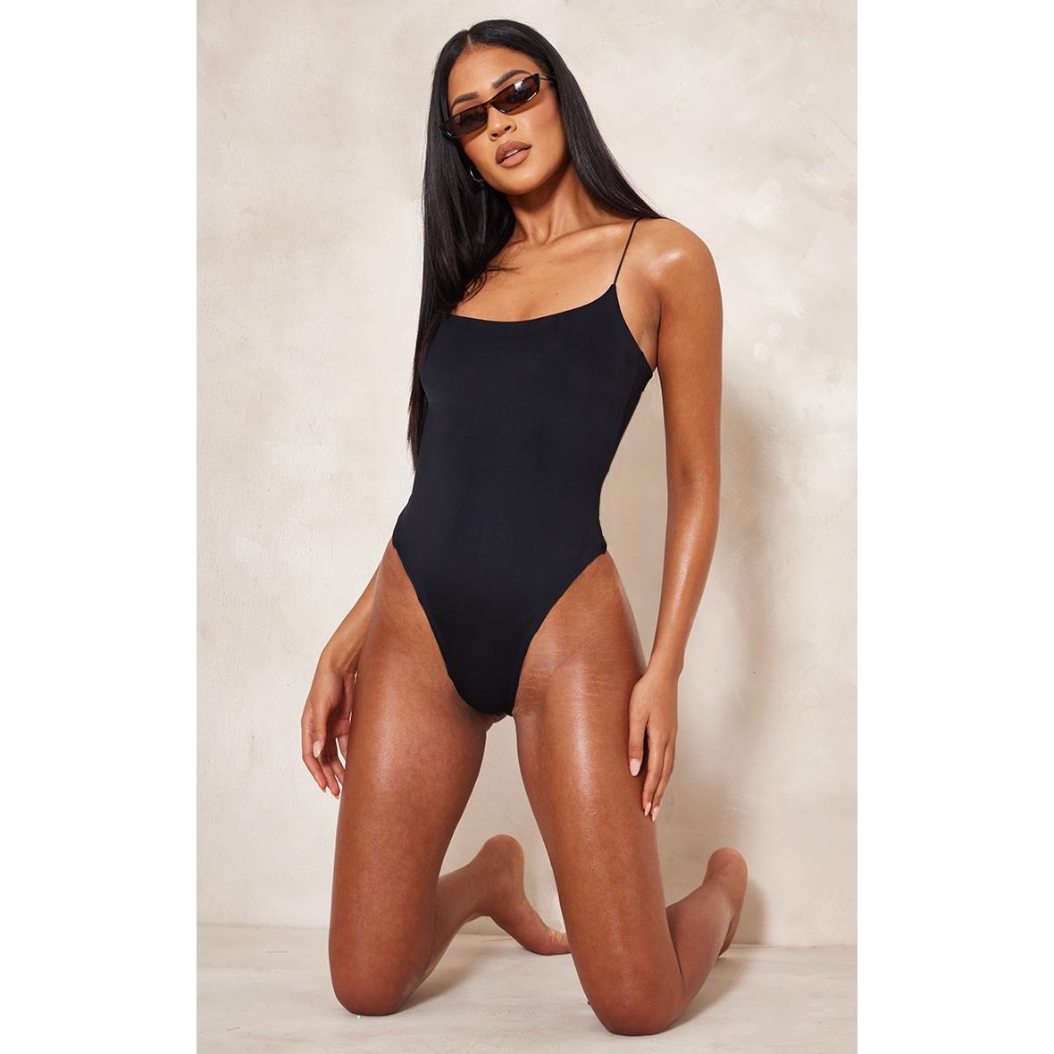 Tall Maillot de bain basique noir à bretelles fines, Noir. PLT Tall est la collection de PrettyLittleThing pour les filles de plus d’1m75. Fini les robes et les tops trop courts, mettez en valeur votre silhouette avec des vêtements qui vous vont parfaitement !