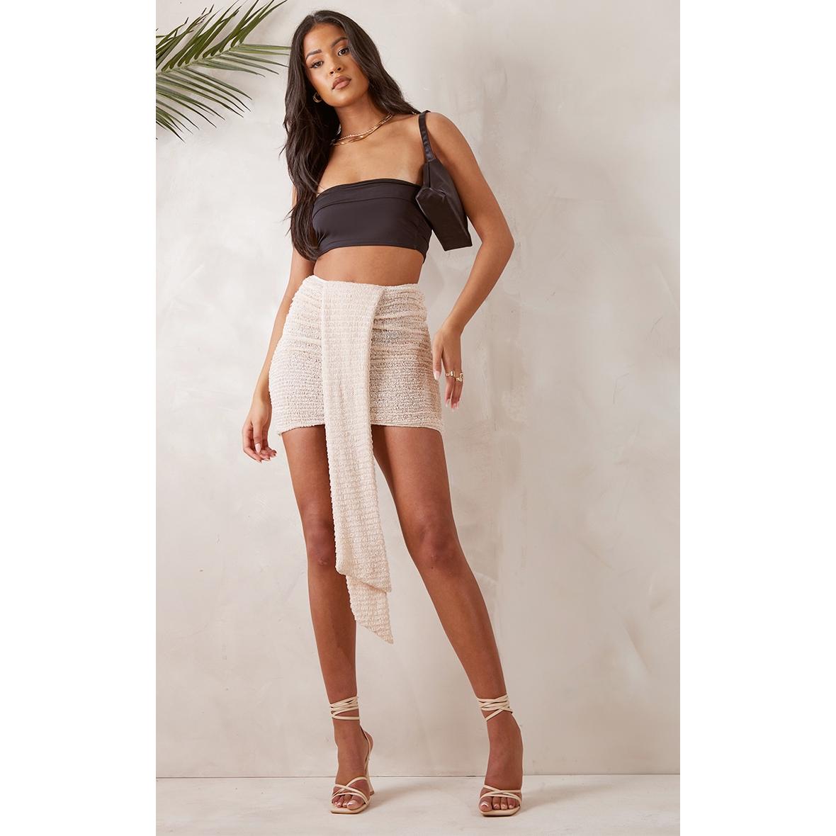 jupe texturée sable pâle à détail drapé. PLT Tall est la collection de PrettyLittleThing pour les filles de plus d’1m75. Fini les robes et les tops trop courts, mettez en valeur votre silhouette avec des vêtements qui vous vont parfaitement !