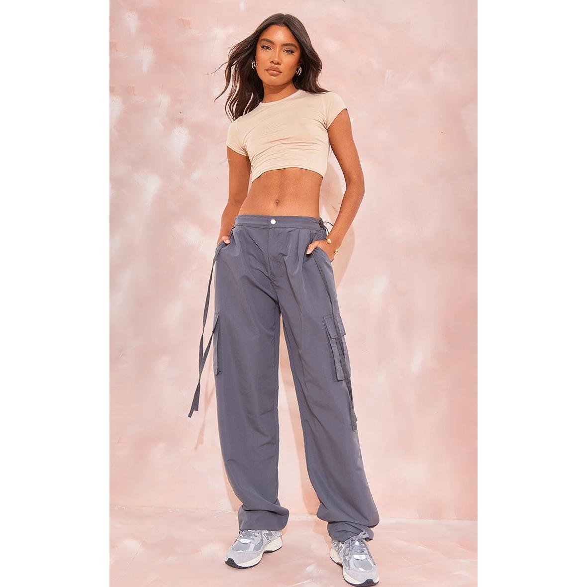 Tall Pantalon cargo gris anthracite en nylon léger à taille basse, Gris anthracite. PLT Tall est la collection de PrettyLittleThing pour les filles de plus d’1m75. Fini les robes et les tops trop courts, mettez en valeur votre silhouette avec des vêtements qui vous vont parfaitement !