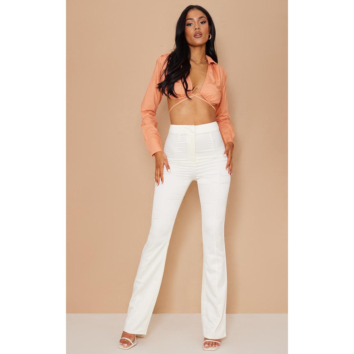 Tall Pantalon flare crème satiné à détail coutures, Crème. PLT Tall est la collection de PrettyLittleThing pour les filles de plus d’1m75. Fini les robes et les tops trop courts, mettez en valeur votre silhouette avec des vêtements qui vous vont parfaitement !