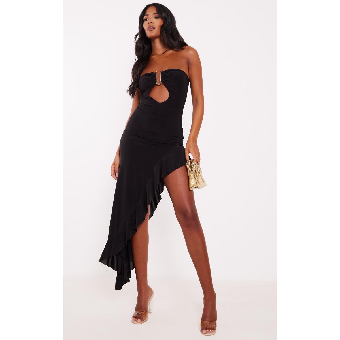 Tall Robe longue moulante noire asymétrique à ourlet volanté, Noir. PLT Tall est la collection de PrettyLittleThing pour les filles de plus d’1m75. Fini les robes et les tops trop courts, mettez en valeur votre silhouette avec des vêtements qui vous vont parfaitement !
