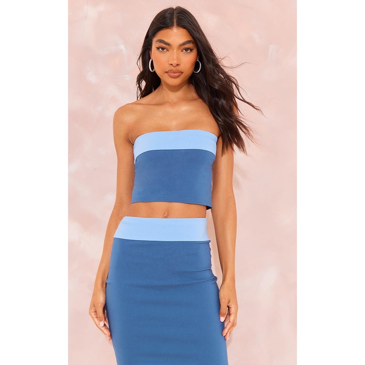 Tall Top bustier bleu à pli contrastant, Bleu. PLT Tall est la collection de PrettyLittleThing pour les filles de plus d’1m75. Fini les robes et les tops trop courts, mettez en valeur votre silhouette avec des vêtements qui vous vont parfaitement !