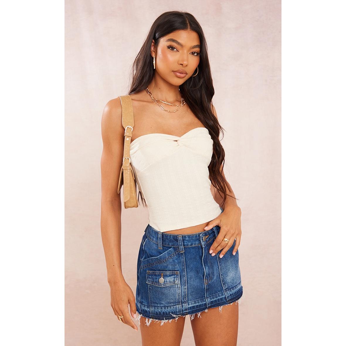 Tall Top bustier long texturé crème torsadé, Crème. PLT Tall est la collection de PrettyLittleThing pour les filles de plus d’1m75. Fini les robes et les tops trop courts, mettez en valeur votre silhouette avec des vêtements qui vous vont parfaitement !