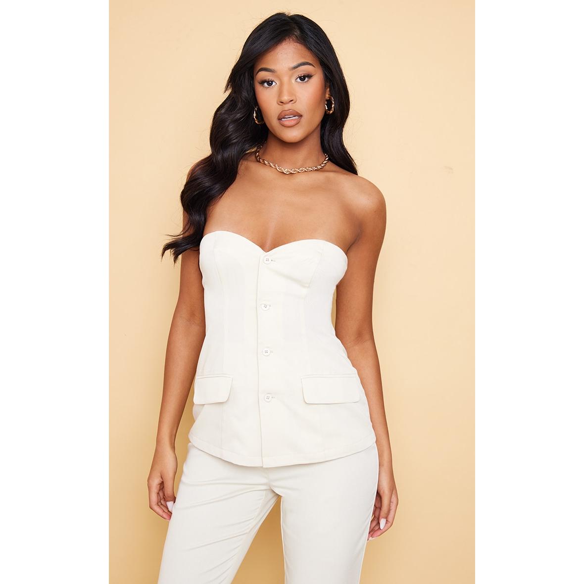 Tall Top corset beige à boutons, Beige. PLT Tall est la collection de PrettyLittleThing pour les filles de plus d’1m75. Fini les robes et les tops trop courts, mettez en valeur votre silhouette avec des vêtements qui vous vont parfaitement !