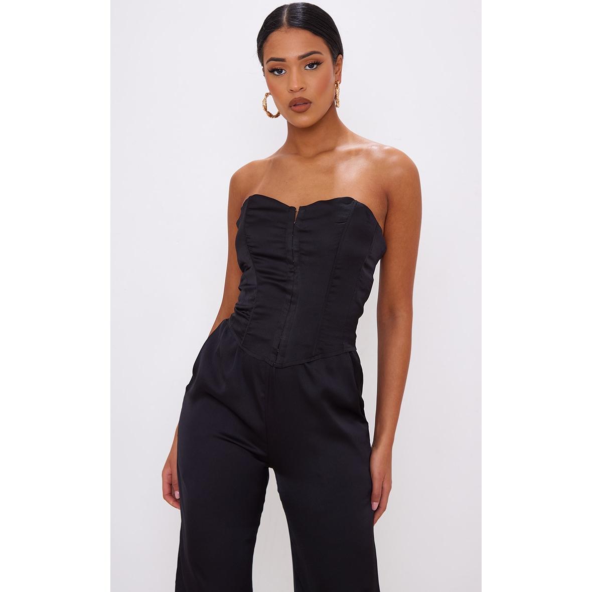 Tall Top corset noir satiné à agrafes et oeillets, Noir. PLT Tall est la collection de PrettyLittleThing pour les filles de plus d’1m75. Fini les robes et les tops trop courts, mettez en valeur votre silhouette avec des vêtements qui vous vont parfaitement !
