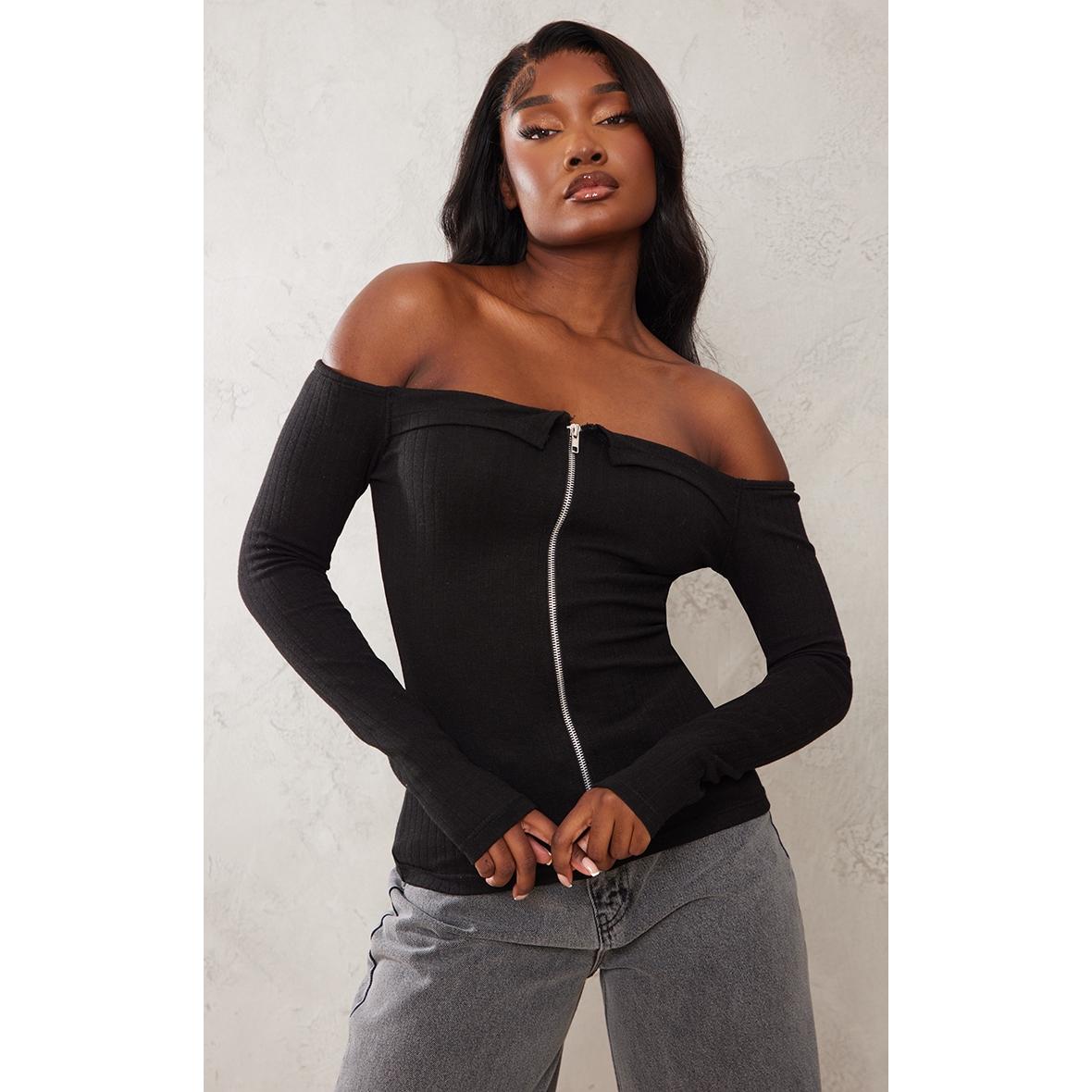 Tall Top côtelé noir à col et zip, Noir. PLT Tall est la collection de PrettyLittleThing pour les filles de plus d’1m75. Fini les robes et les tops trop courts, mettez en valeur votre silhouette avec des vêtements qui vous vont parfaitement !